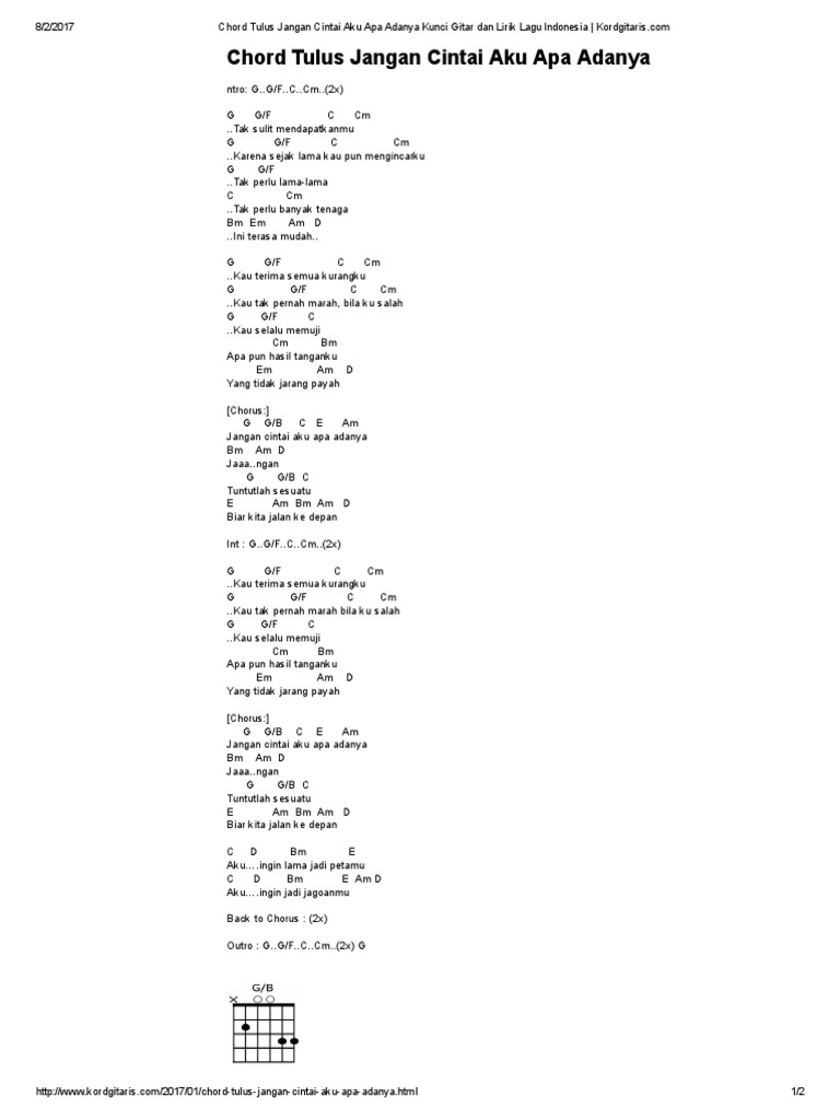 Chord Tulus Jangan Cintai Aku Apa Adanya Kunci Gitar Dan Lirik Lagu Indonesia