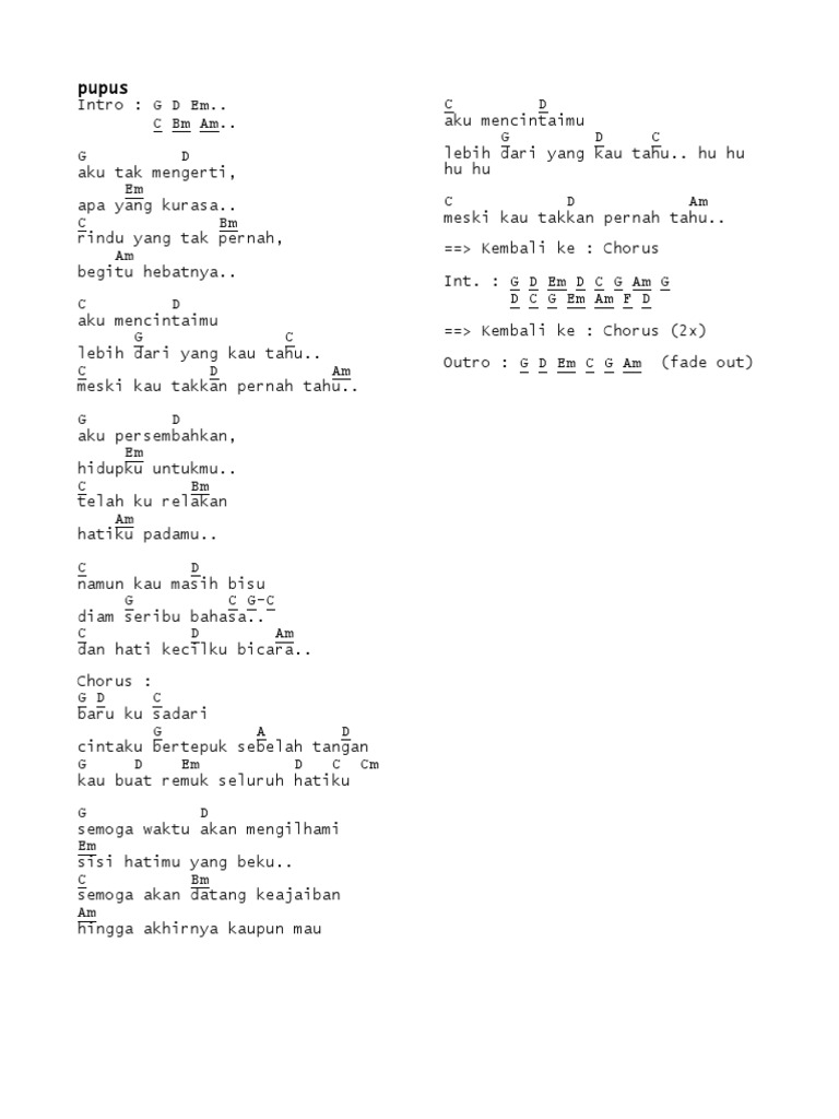Chord Ukulele Lagu Daerah Rasa Sayange Maluku Chord Kunci Ukulele Lagu Panasnya Matahari. TRIBUNMANADOCOID - Berikut Chord Kucinta Kau Apa Adanya - Once Kunci Gitar Dasar dari C Lirik Lagu Kau Boleh Acuhkan Diriku. Lagu tersebut menjadi bagian dari album HiVi berjudul Kereta Kencan.
