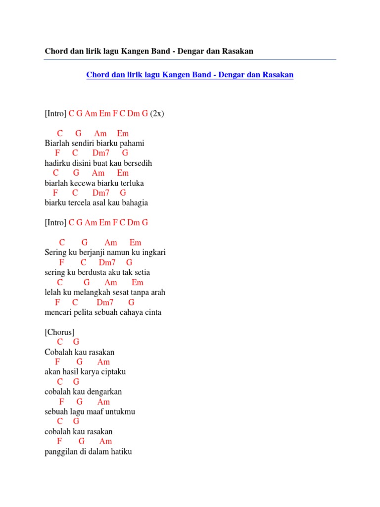 Uis enak senok ninggal kari. Am kanggo mengko sangu kawin. Chord kunci gitar Cinta yang Sempurna Kangen Band ini sangat mudah dimainkan.