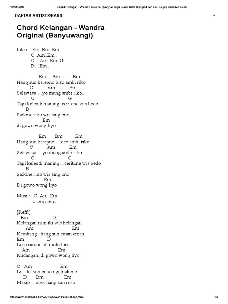 Chord Kelangan Wandra Original Banyuwangi Kunci Gitar Dangdut Dan Lirik Lagu Chordvisa
