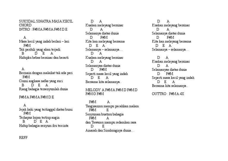 Chord Kunci Gitar Nosstress - Seperti Dia. Nosstress - Laguku Untukmu C Apa masih bisa kau mendengar F G C Pelan saja aku ingin bicara C Tentang perasaan yang gelisah dengan keadaan F G C Tanah yang perlahan habis kau jual C F Mungkin memang engkau bahagia G C Sendiri saja ya sendiri saja kau bahagia C Kebohongan jadi hal biasa F G C Janji bukan lagi Tuk kau tepati C Terang-terangan saja yang punya uang dimenangkan. Chord Kunci Gitar Nosstress -.