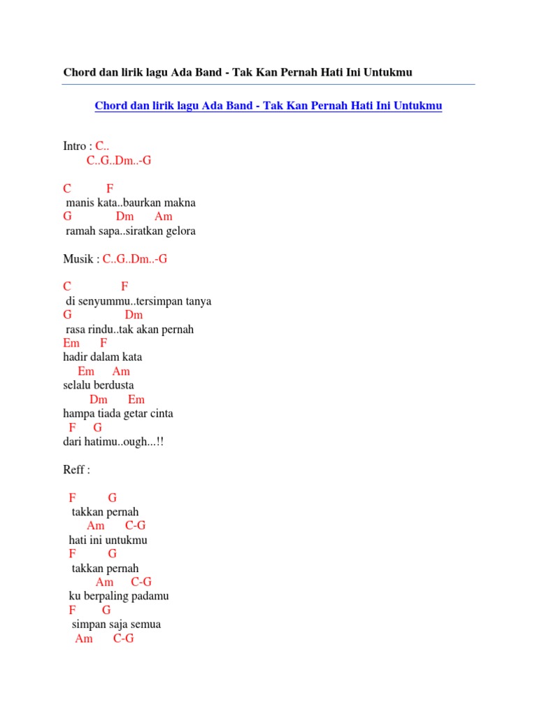 By ADA Band. 4 contributors total last edit on Apr 18 2020. Chord Gitar BIP Sampai Nanti Intro.