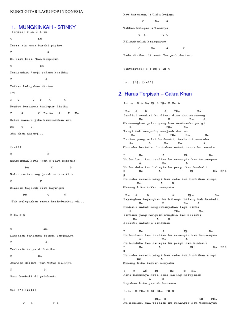 Kunci Gitar Lagu Pop Indonesia