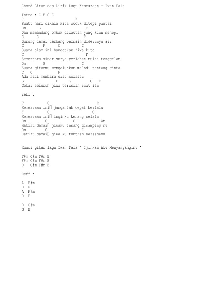 Kemesraan Iwan Fals Chord Gitar Belajar Bersama