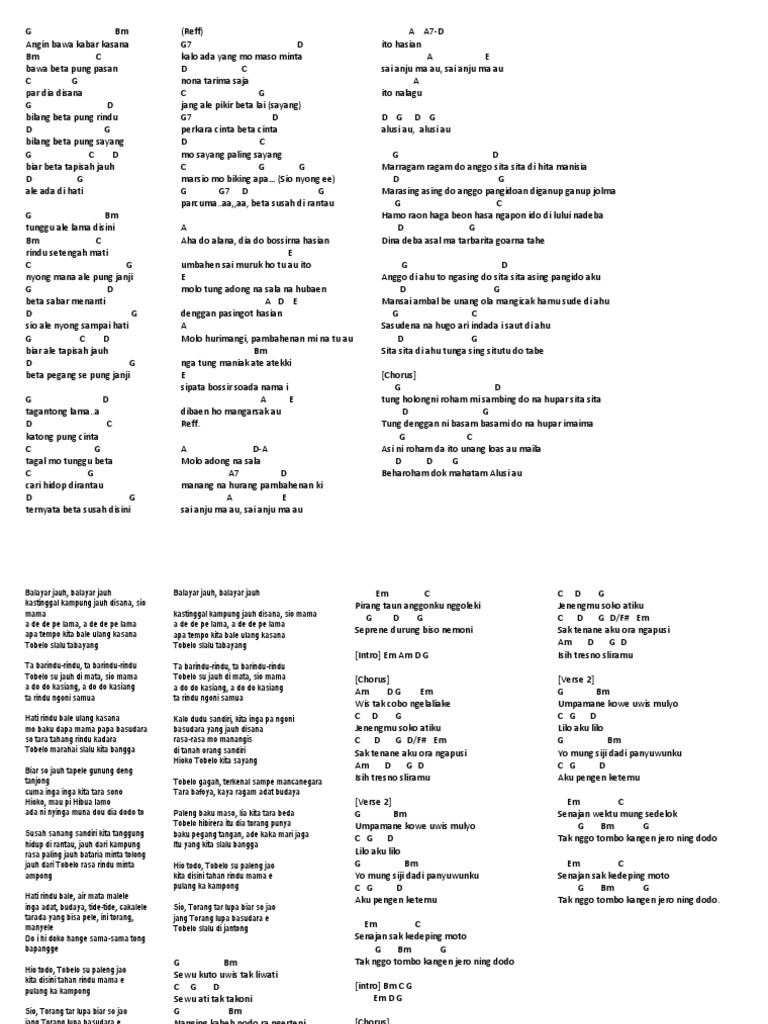 Chord Kunci Gitar Percuma Beta Susah Di Rantau Lagu Ambon