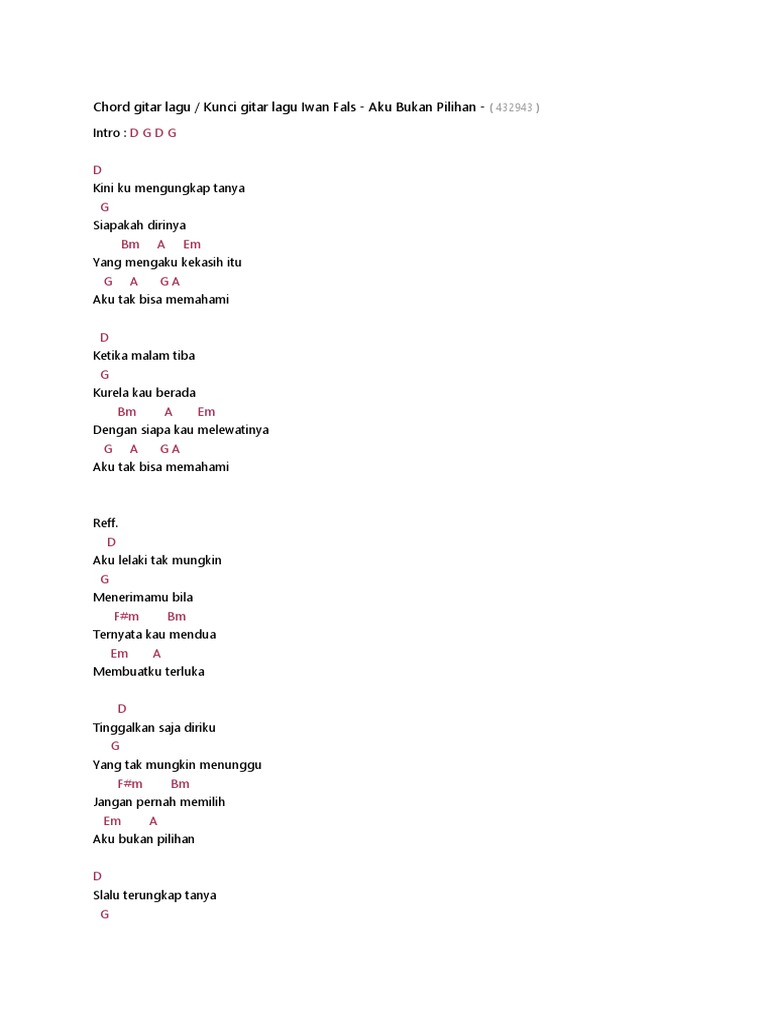Tak seperti Gm B orang biasa B E karnamu tenang. Int E F Dm Gm Cm F B E F Dm Gm Cm F B F B F Gm Dm memang salahku. F G jika harus meninggalkan Fm Am diriku untuknya Dm G tak rela.