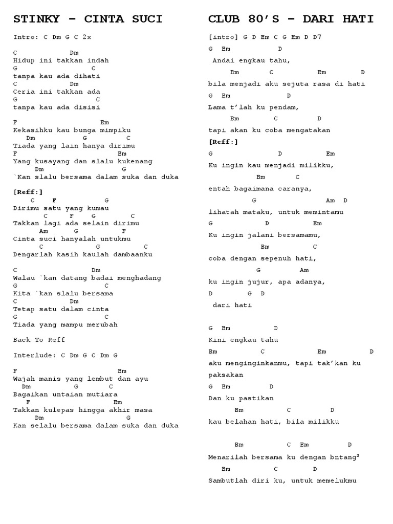 Am Em F C 2x C Bukannya aku tak perhatikanmu Am Bukannya aku tak mengindahkanmu. Ad Grammarly Evaluates Your Papers To Eliminate Grammar Spelling Errors. Berikut chord gitar dan lirik lagu Cinta Kita - Teuku Wisnu feat Shireen Sungkar.